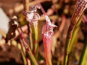 Auch hier gab es noch was zu sehen. Besonders beeindruckend fand ich die fleischfressenden Schlauchpflanzen, Sarracenia, die in ihren Blatt-Schläuchen hineingefallene Insekten verdauen.